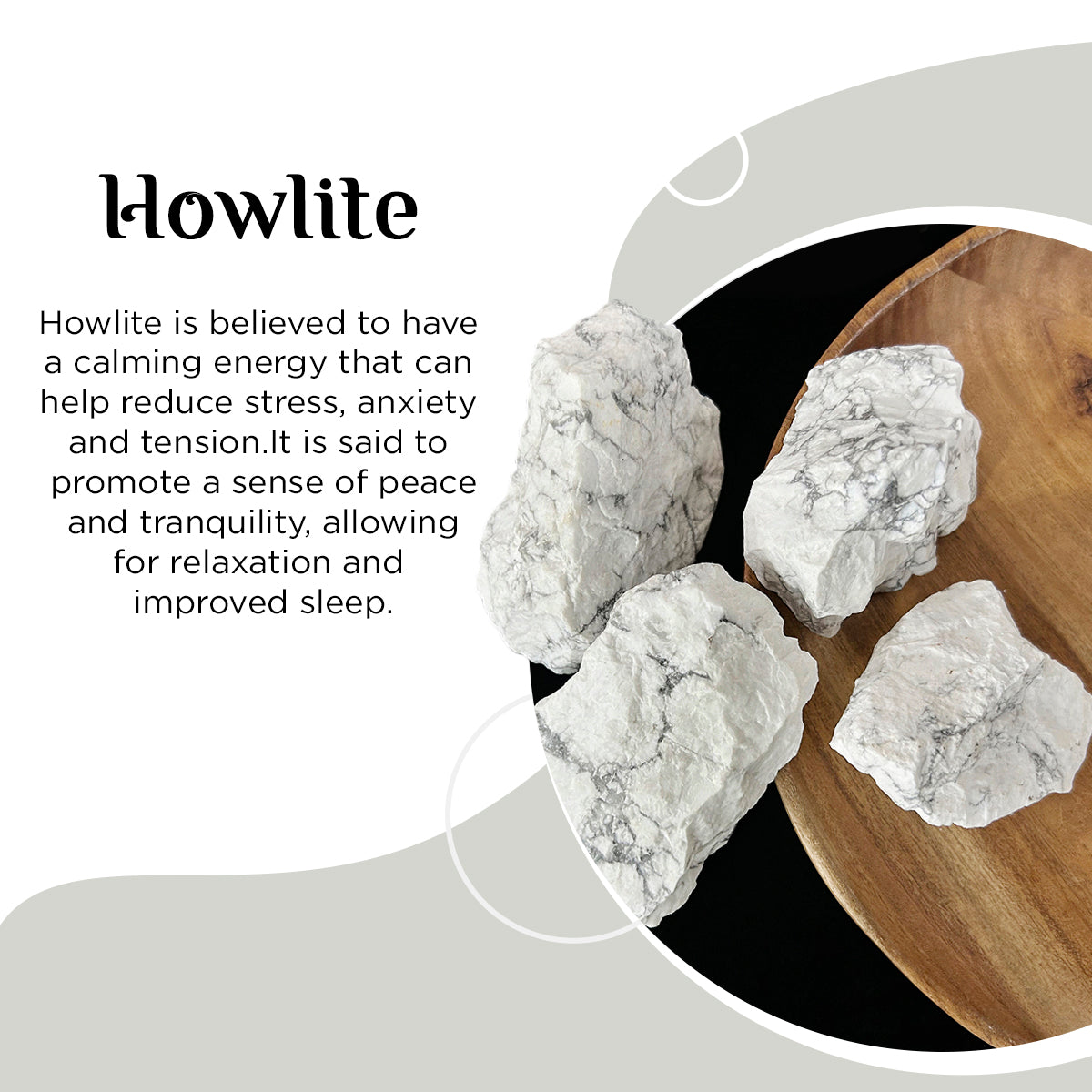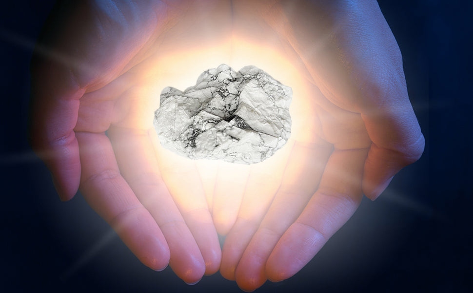 Natural Howlite Howlite is naturally white with fine grey marbling but can be dyed other colours to add a level of colour therapy to its attributes. Natural howlite helps to bring new ideas into focus and is associated with purity. It is also purported to aid in past-life journeys.